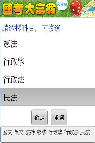 國考大富翁提供選擇題型之題庫,使用者可以單選或複選您正在準備的考科,打造專屬自己的遊戲。