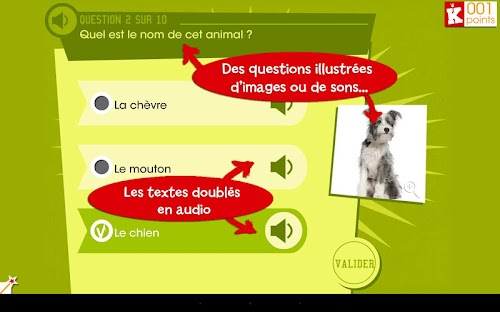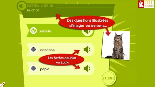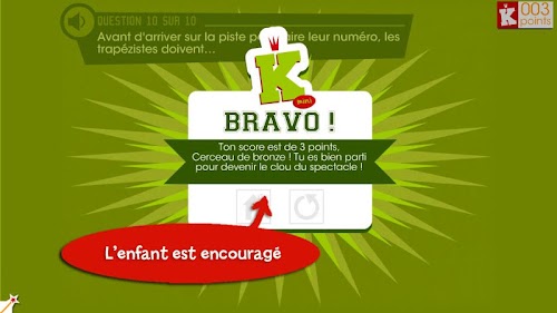 . Votre enfant progresse par partie de 10 questions aléatoires et il est encouragé en fin de partie pour améliorer ses connaissances