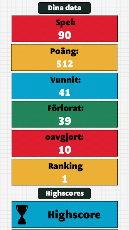 I översiktsstatistiken kan du se alla fakta om dina avslutade spel och även den direkta jämförelsen med dina vänner. Förutsättning: Internetuppkoppling Gott humör Om du har frågor, kontakta oss gärna på [email protected] eller via Facebook :