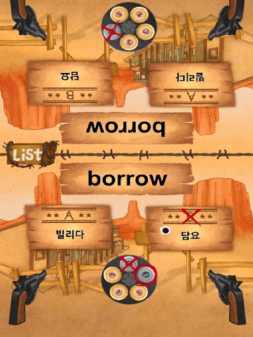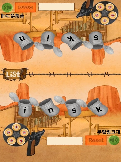 Utilizing the "word + Hangul + speakers will sound" has been configured to be able to have fun learning the words.