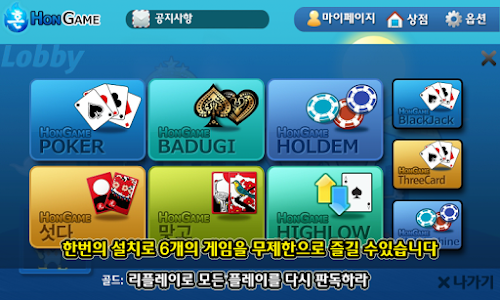 This version of 혼게임 포커,바둑이,홀덤,섯다,맞고,하이로우,카지노 Android Game comes with one universal variant which will work on all the Android devices.
