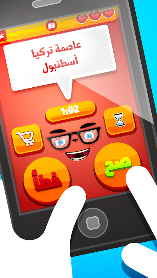 لعبة السؤال القوي - صح أم خطأ لعبة الأسئلة الممتعة بطريقة جديدة كلياً اختبر معلوماتك العامة ، سواء كانت علمية ، رياضية ، دينية، تاريخية ، جغرافية أو فنية .. هنالك العديد و العديد من المراحل في هذه اللعبة لجعلها أكثر متعة و إثارة .. حقائق مذهلة و معلومات جديدة بجميع المجالات .. اختبر سرعة بديهتك و معرفتك بأجمل و أحدث لعبة معلومات.