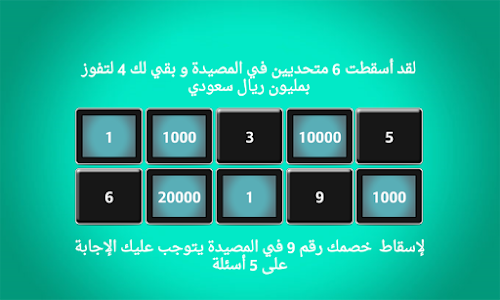 - إمكانية الإنسحاب و الإحتفاظ بالرصيد عند تجاوزك لخمسة متحديين على الأقل.
