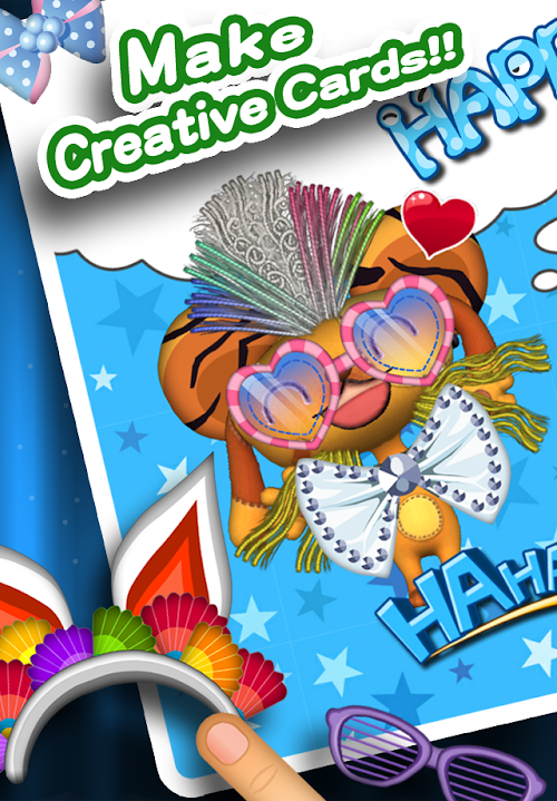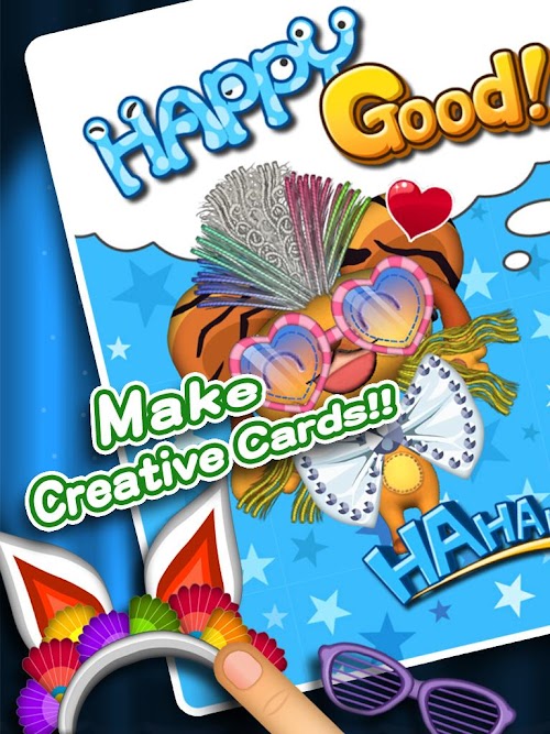 * Q Pet 提供的卡片模式系統,可以幫你把已經設計好髮型的寵物作成玩偶貼紙,不單如此,你還可以同時設定不同的動作與表情,儲存下來的造型,就可以進入卡片模式,利用這些造型圖素,還有額外提供的10多種背景、6種泡泡文字框、20多種飾品、20多種文字貼紙等,彈指輕鬆動手做出展現獨一無二設計力的卡片,更可將你的作品分享給任何人