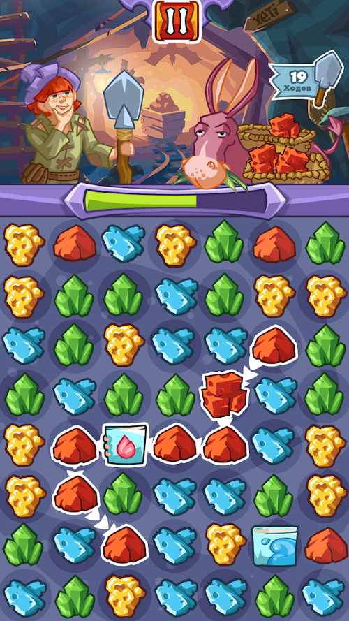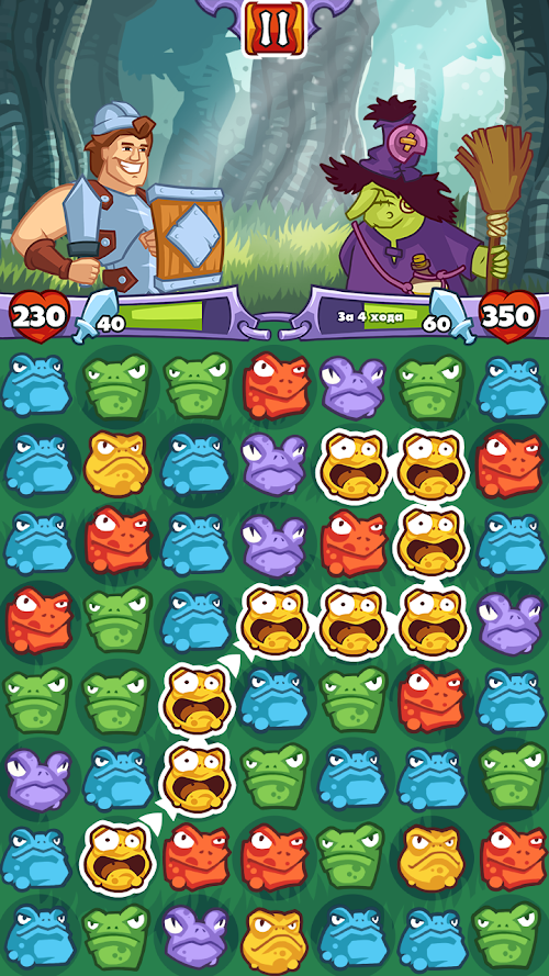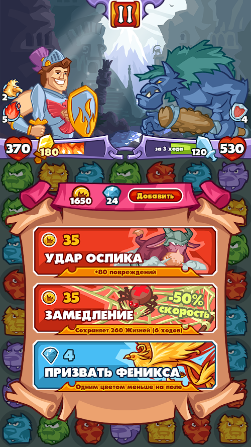 * Unique combat system based on the mechanics of "Gather three-in-a-row"!