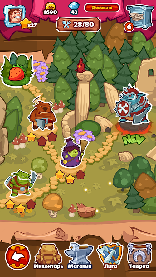 Но на этом приключения не заканчиваются! Участвуйте в королевском турнире, чтобы сразиться со своими друзьями и другими героями со всего света. Продвигайтесь по лигам, занимайте призовые места и получайте щедрые награды!