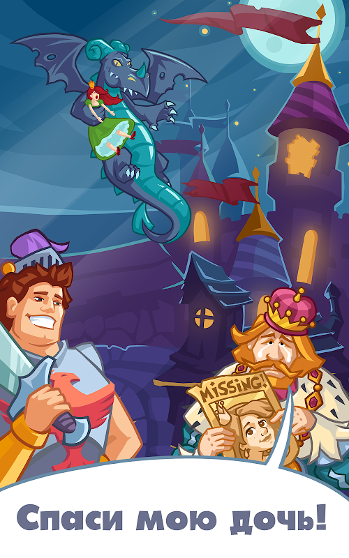 Злой дракон нанес новый удар! Принцесса, как и всегда, заключена в высокой башне, и только вы можете спасти ее. Выполняйте поистине эпические задания и собирайте немыслимые сокровища! Сразитесь с ужасными и ужасно смешными чудовищами в новой игре жанра «собери-три-в-ряд»! Изучите могущественные заклинания, чтобы использовать водовороты и огненные штормы в бою! Следите за развитием истории и станьте самым известным героем этих земель! Поможете ли вы крестьянам или пройдете мимо? Сразитесь ли с опасным бандитом или попробуете договориться с ним? Решение за вами!