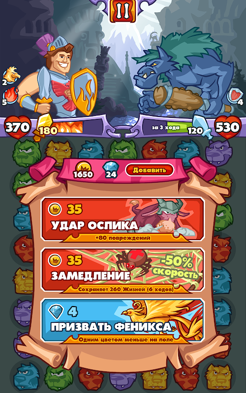 * Уникальная боевая система, основанная на механике «собери-три-в-ряд»!
