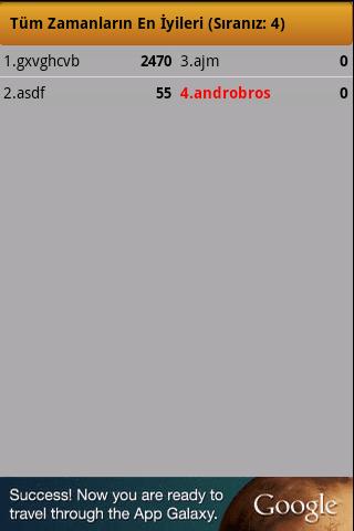 Yüksek skorları öğrenmek için giriş ekranından Yüksek Skorlar düğmesine basabilirsiniz.