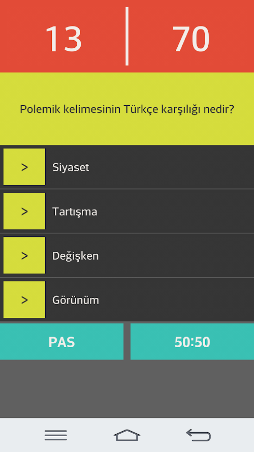 This version of Bilgi Yarışması Android Game comes with one universal variant which will work on all the Android devices.