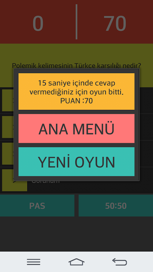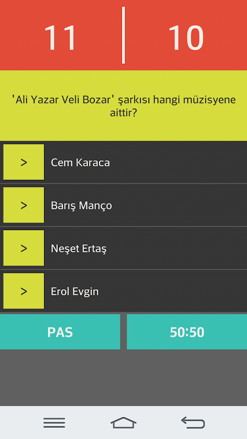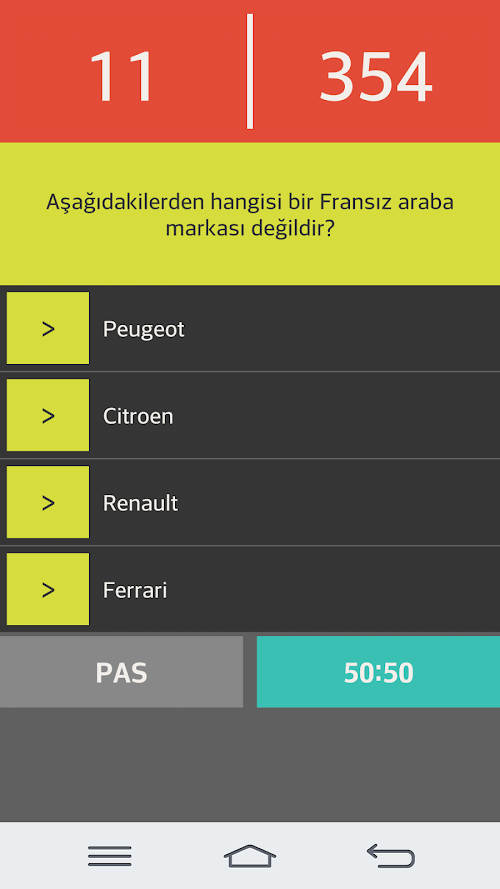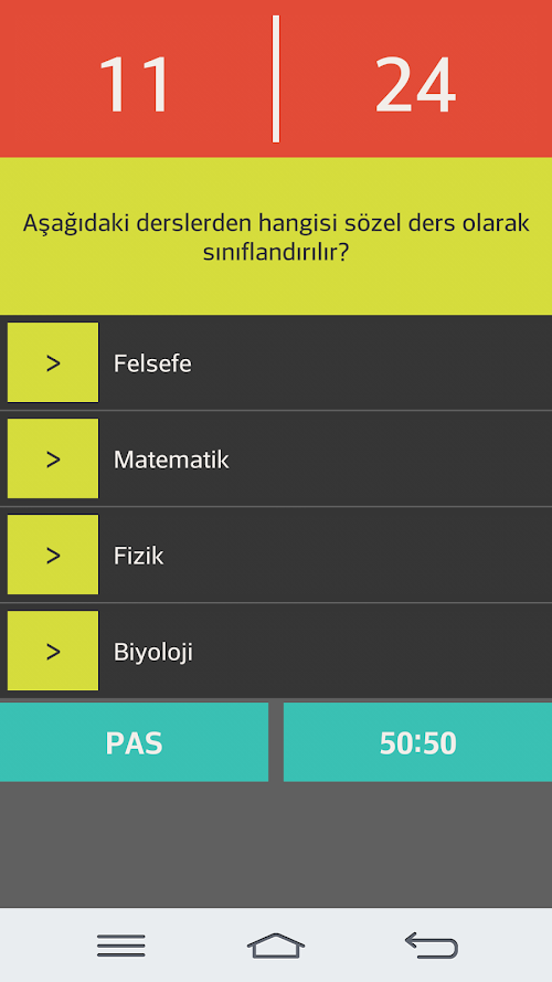 In this game, the questions of general culture, history, geography, music, literature, mathematics, sports and so on. gelir.soru are easy to start from the field as the game progresses mixed start to come more difficult questions. It increases the level of difficulty of the questions increases the points earned. There is also a question of how soon you give the answer, then the question you'll get the higher score.
