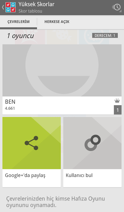 Bütün kartlar eşleştirildiğinde aldığınız puan sunucuya gönderilir. Bu puanlar Google Play'in sağladığı yüksek skorlar servisi kullanılarak sıralanır. Sıralamalar günlük, haftalık ve tüm zamanlar olmak üzere ayrı ayrı tutulur.