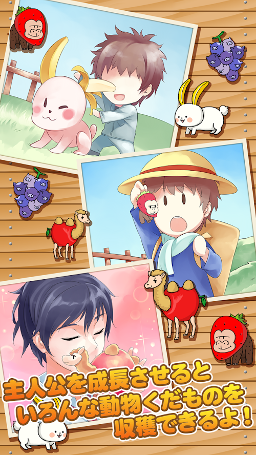 いろんな動物くだものを収穫して、主人公をイケメンに成長させよう!* Easy training game in tap!