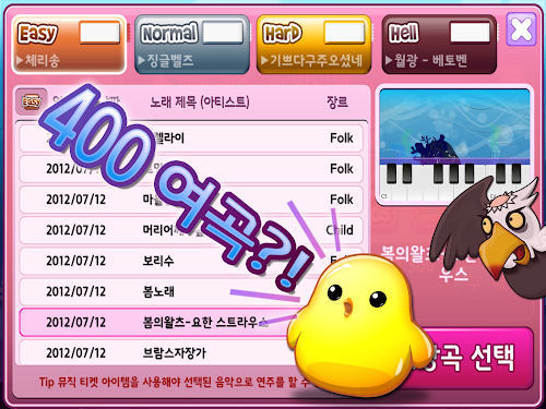 - 무려 400여 개에 달하는 곡들을 완주해보세요.