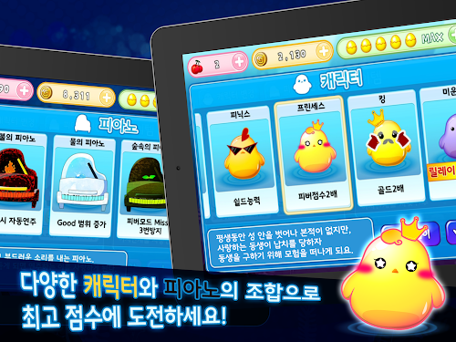 - 다양한 캐릭터와 피아노의 조합으로 최고점수에 도전하세요.