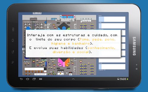 Você deve realizar ações afim de adquirir conhecimento, diversão e sociabilidade ou suprir suas necessidades fisiológicas e sociais. Algumas dessas ações são: Dormir, beber aguá, tomar banho, assistir palestra, jogar e diversas outras possibilidades.