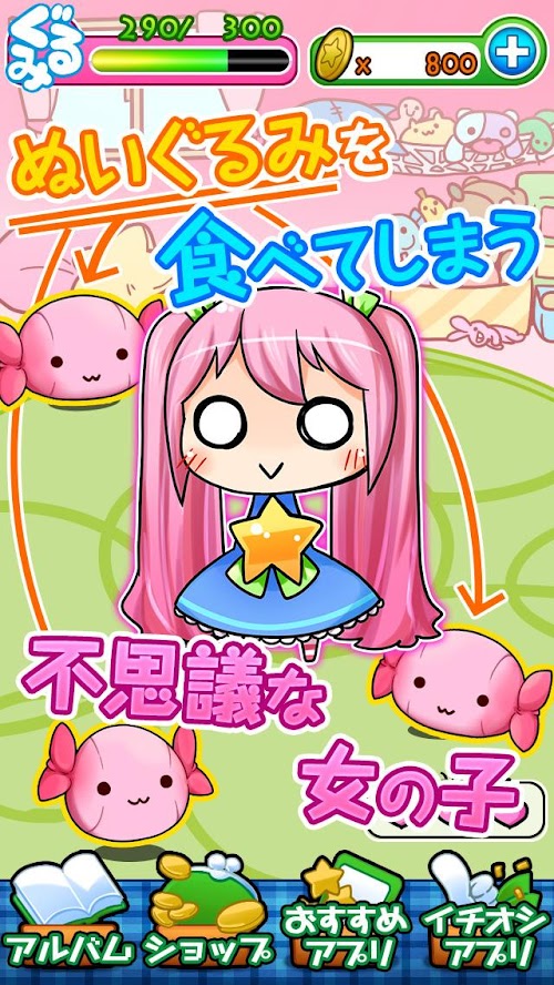 『着ぐるみ少女』は"ぐるみちゃん"がぬいぐるみを食べて育っていく育成ゲームです。