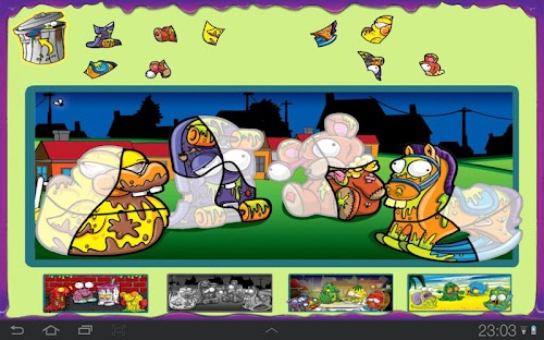 • כפתור ''פאזלים'' – משחק הרכבה של חלקי פאזלים ובהם איורי הזבלונים.
