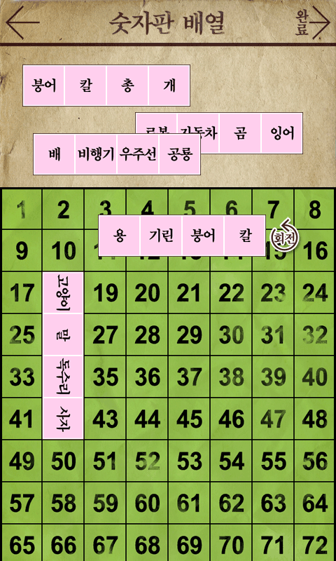 1. 숫자판에 뽑기를 배열하세요.
