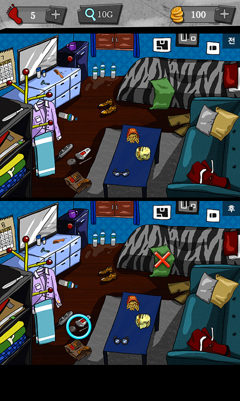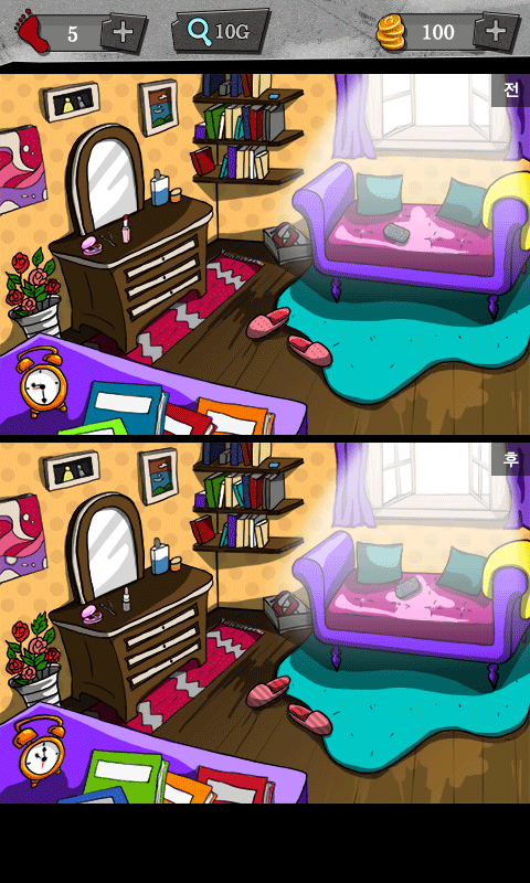 - 범인이 다녀가기 전, 후의 방안의 모습을 비교해
