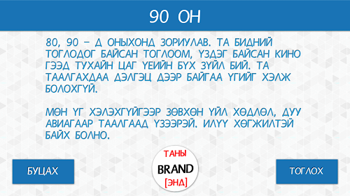 Гэр бүл, найз нөхөд, хамт олноороо хамтдаа тоглож болох хөгжилтэй, зугаатай, танин мэдэхүйн “60 секунд” тоглоомыг UlaanGil.com-ын хамт олон танд хүргэж байна. Манай тоглоомыг татаж авснаар ойр дотныхоо хүмүүстэй цагийг зугаатай өнгөрүүлээрэй. Үгний багцуудаас сонгон бие биедээ тайлбарлан таалгахдаа хоорондоо баг болж, авсан оноогоороо өрсөлдөөрэй. Багцаас хамаарч үгээр тайлбарлах, үйл хөдлөлөөр үзүүлэх, дуу авиа гаргах зэрэг олон төрлөөр тайлбарлан таалгана уу.