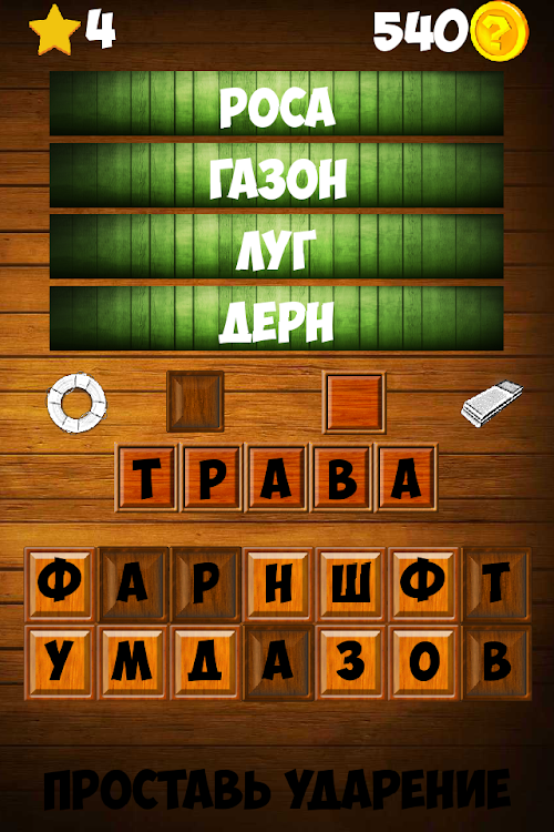 In the game you will be given the opportunity to guess the word on the four associations to them. Each word-association opens separately. Cost increases in its progression. The sooner you guess the word, the more coins, save for the next level.