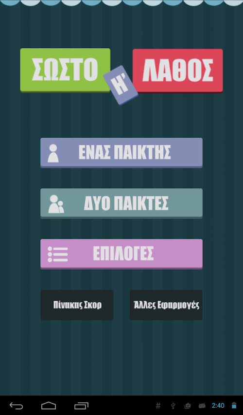This version of Σωστό ή Λάθος Παιχνίδι γνώσεων Android Game comes with one universal variant which will work on all the Android devices.