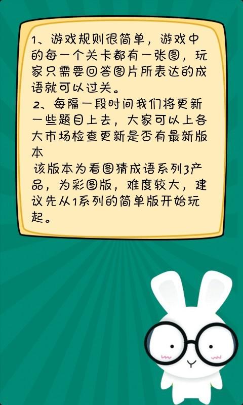 This version of 看图猜成语3(彩图高难版) Android Game comes with one universal variant which will work on all the Android devices.