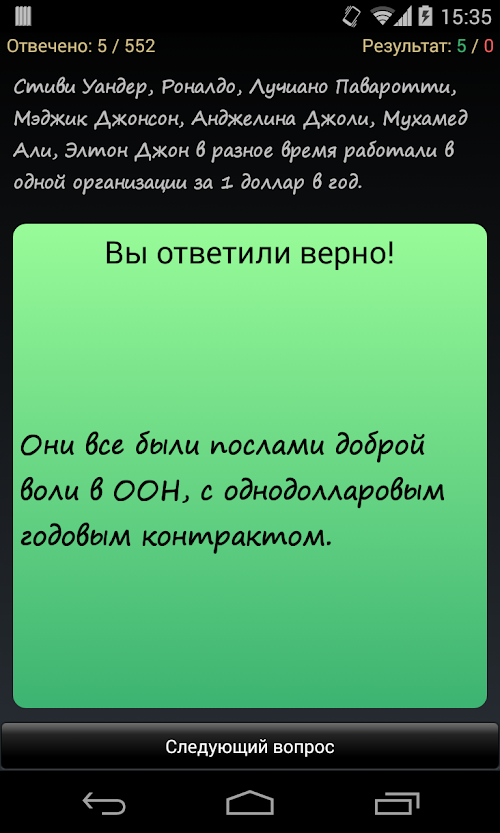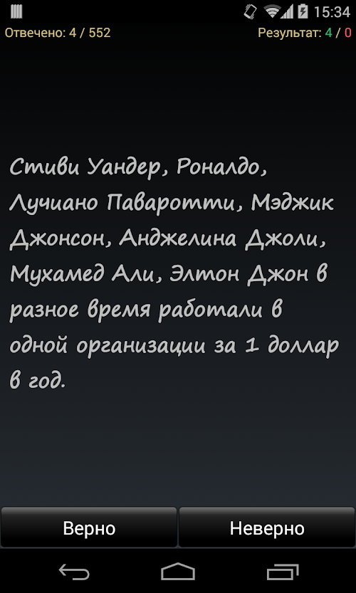 -Скачивайте и проводите время с пользой!Want to know a lot of facts that you did not know before? Do you believe in the statement or in doubt? True or false? Weight interesnyx questions to test intelligence await you.