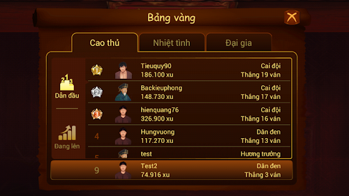 - Hệ thống huân chương tuyệt đẹp với nhiều cấp độ, bảng xếp hạng phong phú giúp bạn thỏa sức tranh tài với hàng ngàn Chắn thủ khác.