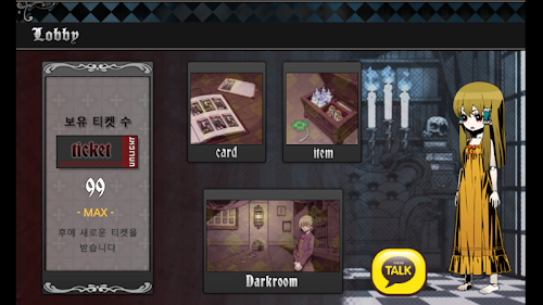 Every 15 minutes a dark room one by one and get your tickets can be obtained for various character cards, character costumes, Curious by using a dark room for the tickets (you can collect up to 99).