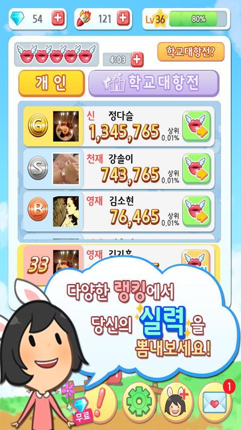 >> 같은 학교 친구들이 많으면, 실력이 좋으면 매주 대박 상품이 쏟아집니다.