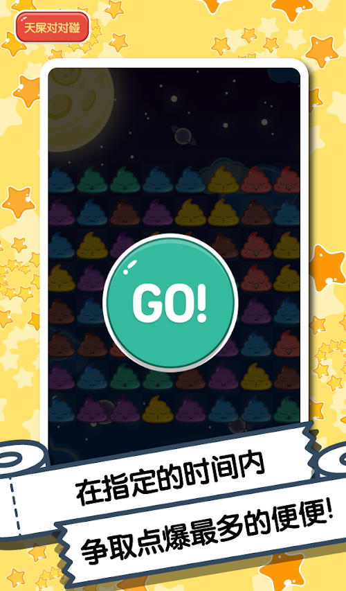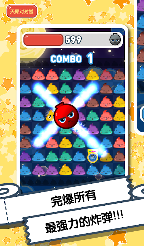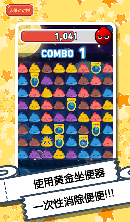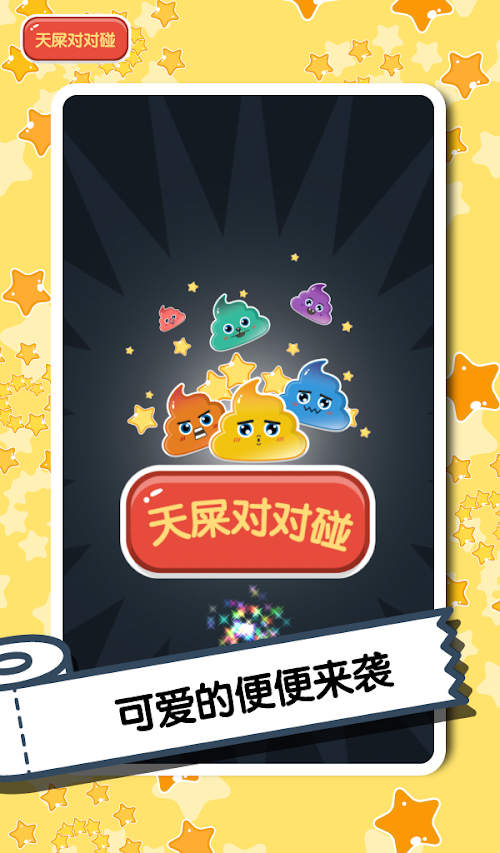 屌丝们,你们还在终日面对着白菜萝卜兔子熊猫亦或是钻石迷阵的消除游戏不能自拔吗?告诉你,这一切即将成为陈年旧事了!一款你从未体验过的、高端大气上档次的“天屎”消除游戏就要从天而降啦!这款天屎对对碰游戏不仅能够成全你对消除游戏的无限热爱,更会为你带来意想不到的全新游戏体验!还在等什么?Come on!快来加入我们的“新新屎团”吧!