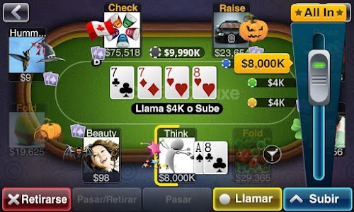 Texas Holdem Póquer Deluxe ofrece modo de juego clásico, plena compatibilidad con Facebook y una comunidad activa. Compite contra más de 16 millones de jugadores en Facebook, iPad, iPhone y Android. ¡Póquer al estilo Las Vegas!