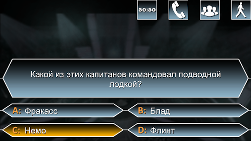 Для того, чтобы выиграть, необходимо правильно ответить на 15 вопросов из различных областей знаний - стоимостью от ста рублей до миллиона. Каждый вопрос имеет 4 варианта ответа, из которых только один является верным. В любой момент игрок может остановиться и забрать деньги. В случае неверного ответа выигрыш участника сокращается до ближайшей достигнутой «несгораемой» суммы, и он прекращает участие в игре. Станьте “миллионером” ответив правильно на все вопросы викторины, а помочь в этом непростом деле вам могут «классические» 3 подсказки: «50:50», «Звонок другу» и «Помощь зала».