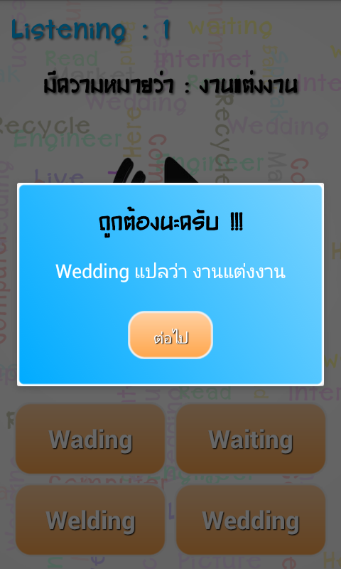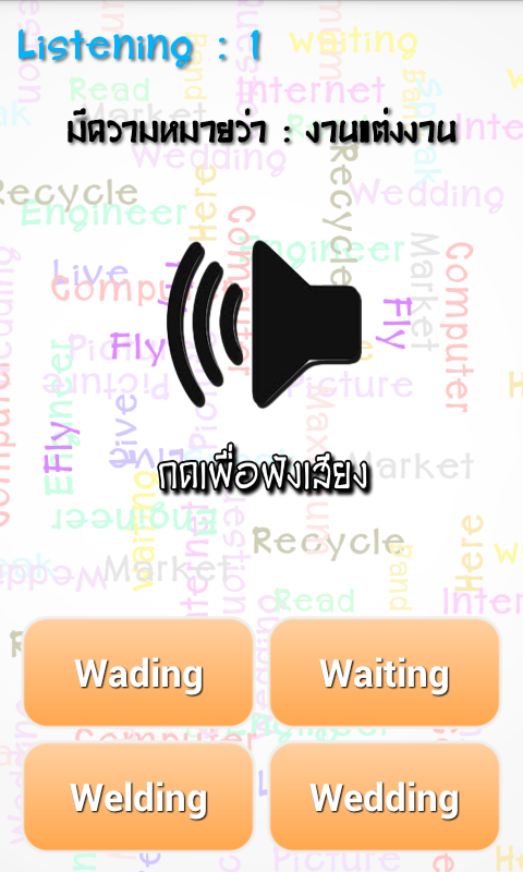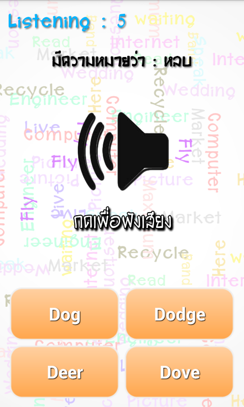 เป็นเกมที่จะให้ผู้เล่นได้ฟังเสียงแล้วทายว่าเสียงนั้นคือคำไหน โดยจะมีความหมายของคำศัพท์เป็นตัวช่วยในการเลือกคำตอบ