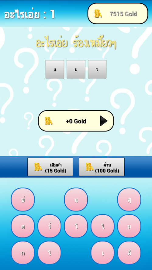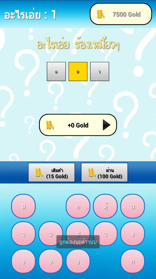 1. สุ่มตอบให้ 1 ตัวอักษร เสีย 15 gold