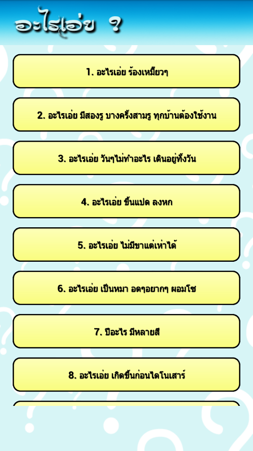 If you are looking to download other versions of อะไรเอ่ย ? โดนๆ Android Game, We have 1 version in our database. Please select one of them below to download.