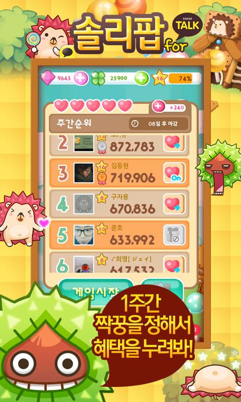 도전하기 모드로 친구들과 솔리팝 대결을 펼쳐보세요.