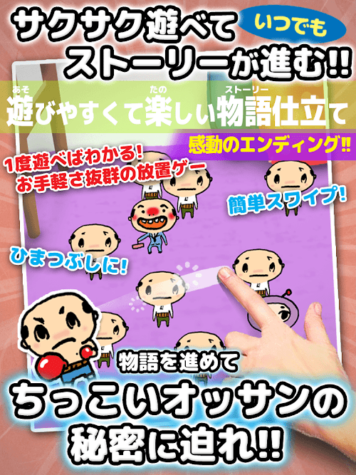 操作は簡単、時間を置いて出現したちっこいオッサンをスワイプするだけ!