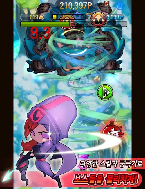 1000M마다 랜덤으로 등장하는 다양한 보스들!