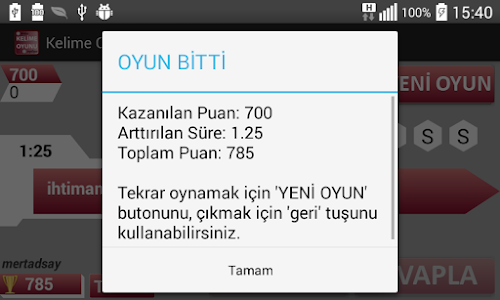 Ayrıca oyun bitişinde artırdığınız süre, saniye başına 1 puan olmak üzere toplam puanınıza eklenir.