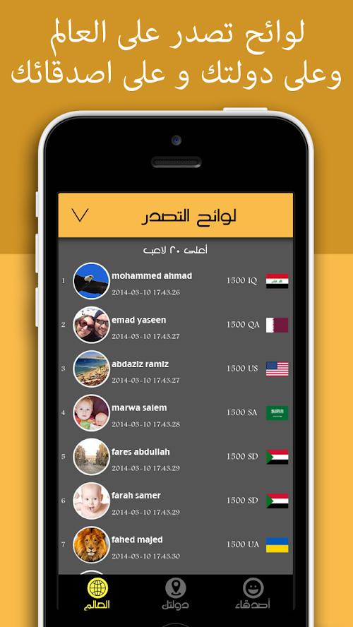 > قوائم تصدر على العالم وعلى دولتك وعلى أصدقائك
