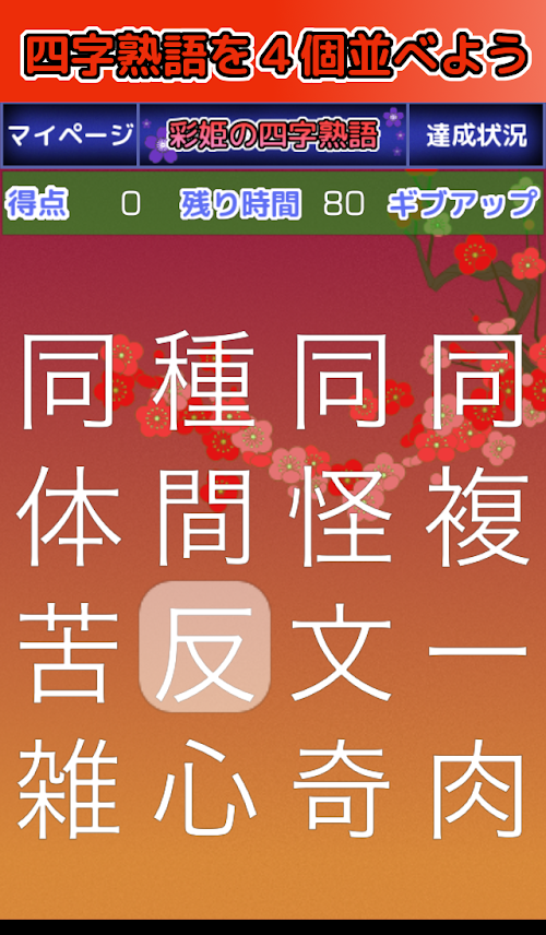 パズルは四つの四字熟語がシャッフルされています。