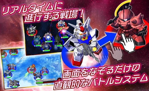 様々な「ガンダム」作品に登場するモビルスーツやキャラクターを集め自分オリジナルの部隊を編制。部隊を「強化」「開発」「設計」で育成し「ガンダム」作品の世界を踏襲したステージを攻略するシミュレーションゲームです。