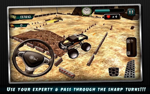 This game will require your utmost incredible attention. After a great experience of car and truck parking, now is time to get a new experience in Monster truck parking action with the greatest effort of player to park the 4x4 destruction off-road Dirt track Monster truck game madness. Feel super big and drive big with most craziest and biggest cars in yards. Enjoy the other new simulation Monster truck in Dirt Yard parking with mega speed and extra fun to enjoy. Turn, curve, sharp edges, barrier, skit, brake, hump, jump crash & Smash with all new experience on your device. Go Get the Amazing Bigfoot experience.
