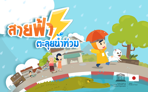 เกม สายฟ้า ตะลุย น้ำท่วม พัฒนาภายใต้ความร่วมมือระหว่าง ยูเนสโก้และทุนสนับสนุนจากรัฐบาลญี่ปุ่น สำนักงานการศึกษานอกระบบและการศึกษาตามอัธยาศัย สำนักงานปลัดกระทรวงศึกษาธิการ และ บริษัท โอเพ่นดรีม จำกัด