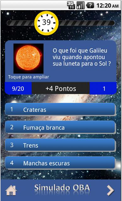 As perguntas são adaptadas das provas reais realizadas desde o primeiro ano da Olímpiada, organizadas em um empolgante quiz, pra você se divertir e testar seus conhecimentos de astronomia e astronáutica.