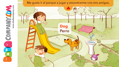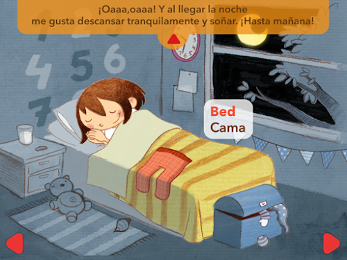Toca la pantalla sobre los objetos marcados y descubre más de 70 palabras de uso común en ingles.