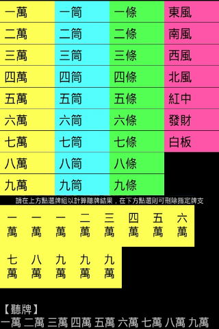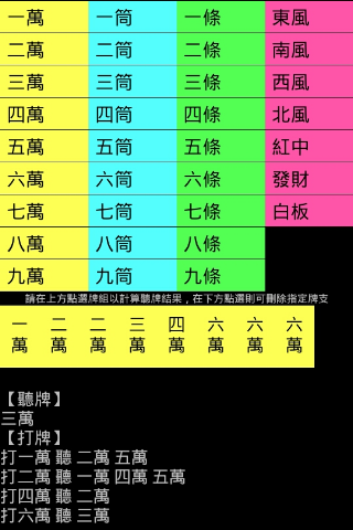 「聽牌獵人2」is smart program to know the cards. You can used smart mobile devices enter Mahjong, and the app will tell you what cards you need. You will not avoid any miss cards and lost money. So, it is your good assistant."Draws Hunter 2" is used to calculate a mahjong card to listen to what the program, you can use the phone tap tiles, you can tell what cards you listen, not over the water hammer darling, do not fear therefore wrong card fraud Hu , playing cards is a good helper, "draws hunters."